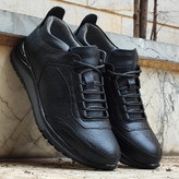 کتونی بنددار مشکی چرم سوگو زیره دو رنگ