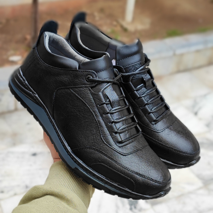 کتونی بنددار مشکی چرم سوگو زیره دو رنگ