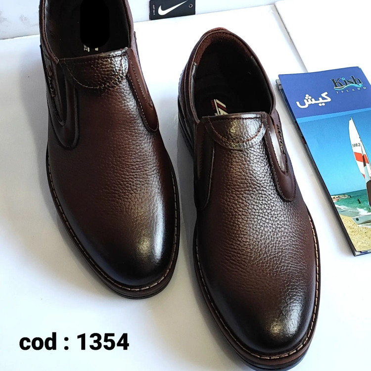 چرم طبیعی تبریز رنگ قهوهای در سایز ۴۰ تا ۴۴ با قالبی استاندارد ، رویه چرم اصل ، آستری چرم بزی و زیره پی یو کفی طبی نرم و راحت