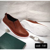 کفش چرم مصنوعی قهوه ای کد 141 ♦️جنس رویه چرم مصنوعی درجه یک ♦️ جنس زیره : pu بسیار نرم و راحت یه کار سبک ، نرم، راحت و بسیار شیک و خوش پوش رنگ بندی : قهوه ای تیره 143، مشکی 142 رنگ بندی:قهوهای و مشکی