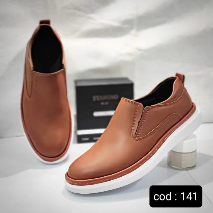 کفش چرم مصنوعی قهوه ای کد 141 ♦️جنس رویه چرم مصنوعی درجه یک ♦️ جنس زیره : pu بسیار نرم و راحت یه کار سبک ، نرم، راحت و بسیار شیک و خوش پوش رنگ بندی : قهوه ای تیره 143، مشکی 142 رنگ بندی:قهوهای و مشکی
